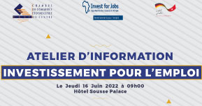 Dans le cadre de la campagne d’information sur le nouveau appel à proposition de projets lancé le 1er juin 2022 par la Facilité « Investissement pour l’emploi - IFE », la Chambre de Commerce et d’Industrie du Centre a le plaisir de vous inviter à l’atelier d’information organisé en collaboration avec la Facilité IFE le Jeudi 16 juin 2022 à 09h00 à l’Hôtel Sousse Palace