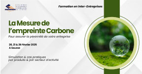 En vue de faire face à la concurrence et de s’adapter avec les enjeux socio-économiques, votre entreprise doit adopter une stratégie d’anticipation et de gestion de risques. Parmi les risques auxquels vous devez vous préparer, les risques liés à la transition énergétique dont la gestion efficace dépend actuellement de la mesure de l’empreinte carbone dans votre entreprise. A cet effet, la Chambre de commerce et d’Industrie du centre a le plaisir de vous inviter au cycle de formation pratique programmé les 20,21 et 26 février 2025 à Sousse. Au programme :- Cadre juridique international