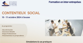 La performance du service RH ne peut se concrétiser que grâce à l’adoption d’une politique fiable en matière du contentieux social dont le but est de prévenir et éviter les litiges. A cet effet, la Chambre de Commerce et d’Industrie du Centre vous propose de participer au cycle de formation en inter-entreprises portant sur le contentieux social. Au programme :