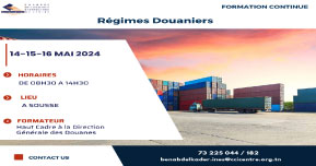 Si vous souhaitez optimiser la gestion des opérations d’import/export et si vous voulez approfondir vos connaissances liées à la réglementation en vigueur, La Chambre de Commerce et d’Industrie du Centre vous propose un cycle de formation pratique visant à améliorer les compétences clés pour exceller dans le domaine du commerce international. Au programme : -  Les régimes douaniers définitifs Cadre commun et cadre préférentiel - Les régimes adaptés à l’utilisation - les régimes douaniers adaptés à la fonction de stockage - les régimes adaptés à la transformation Population cible : Chefs d’entreprises, Commissionnaires en douane,Déclarants,Transitaires,Responsables achat & logistiques,Cadre du service Import/Export et Toute personne détenant des pré-requis en commerce international. Vu l’intérêt que revêt cette formation, prière de confirmer votre participation avant le 30/04/2024.
