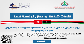 في إطار دعم التعاون الاقتصادي والتجاري بين تونس ودولة ليبيا الشقيقة وحرصا منا على مزيد تنمية العلاقات التجارية ودفع نسق المبادلات بين رجال الأعمال التونسيين ونظرائهم الليبيين، نتشرف بدعوتكم لحضور