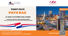 Cette rencontre vous permettra de prendre connaissance des potentialités économiques du marché Hollandais ainsi que des opportunités de coopération et de partenariat offertes par ce marché. Nous vous invitons à y prendre part et à vous inscrire via le lien suivant : https://forms.gle/HWuTXgiCj1XtRfeu5