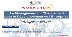 Piloter le développement de l'entreprise à travers le management du changement Vendredi 13 décembre 2024 de09h00à 13h00au siège de la CCIC à Sousse